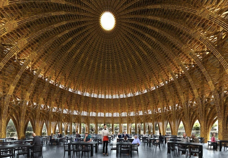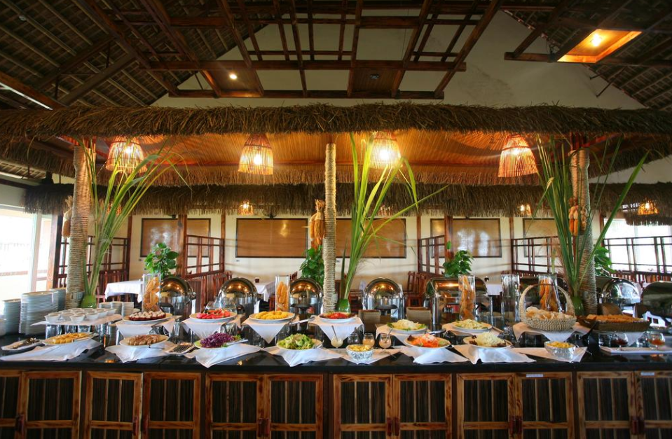 Kiến trúc vòm tre xác lập một điểm nhấn tuyệt vời có môt không hai. Vật liệu tre đặc sắc làng quê Việt Nam. Nhà hàng phát huy công năng sử dụng đáp ứng được khách Á Châu (Hàn, Nhật, Thái, Mã…) và khách nội địa, khách Quốc tế khác. Tổng công suất 600 khách gồm 1 nhà hàng chính và 1 nhà hàng phụ phục vụ khách nghỉ dưỡng và khách trong ngày, khách hội nghị hội thảo, sự kiện…Trong đó làm một số phòng riêng VIP phục vụ theo yêu cầu riêng của khách, Khu hút thuốc của khu vực nhà hàng, Khu ăn ngoài trời BBQ…