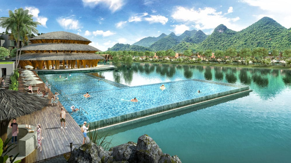 Tổ hợp Biệt thự Vedana Cúc Phương thiết kế một chuỗi các hồ, bể bơi lớn nhỏ. 01 bể bơi chính ngoài trời 500 m2, các bể bơi nhỏ tại các villa cao cấp…Tiện ích đính kèm có quầy Poolbar, khu vực tắm tráng, thay đồ,…