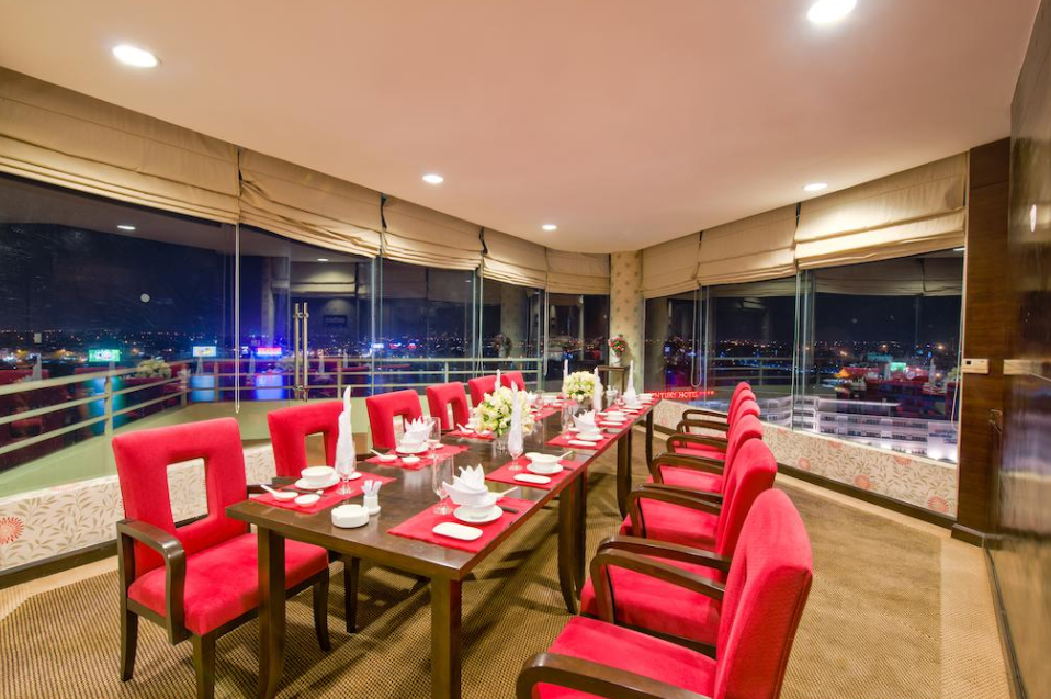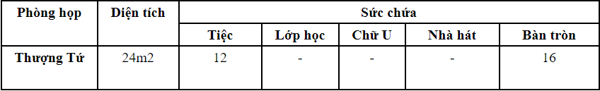 Phòng họp Thượng Tứ nằm ở trên tầng 11 với tầm nhìn ra toàn cảnh sông Hương và cầu Tràng Tiền. Đây là địa điểm phù hợp để tổ chức bữa ăn thân mật hoặc cuộc họp nhỏ với sức chứa từ 10 – 15 người.