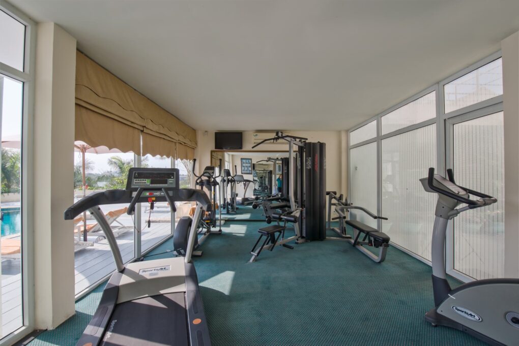 Phòng gym nằm cạnh hồ bơi, được trang bị nhiều máy móc, dụng cụ tập, để đáp ứng được hết nhu cầu của du khách có sở thích tập gym hoặc thích chăm sóc sức khoe bằng cách tập thể dục.  Khách sạn cũng có đội ngũ PT chuyện nghiệp sẽ hỗ trợ nhiệt tình cho quý khách.