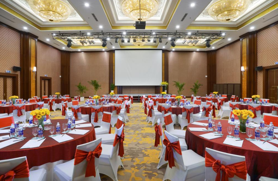 Đội ngũ nhân viên tận tình, chuyên nghiệp và tận tâm sẽ đảm bảo mỗi chi tiết dù là nhỏ nhất đều được chăm chút chu đáo. Hệ thống trang thiết bị hiện đại bậc nhất bao gồm âm thanh, ánh sáng, máy chiếu, màn chiếu, sân khấu… cùng nhiều tiện ích khác đảm bảo sự kiện sẽ diễn ra thuận lợi, thành công và đáng nhớ.