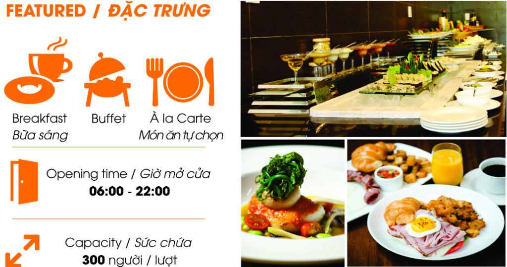 • Tầng 1: Khu Buffet, sức chứa hơn 300 khách/ lượt.