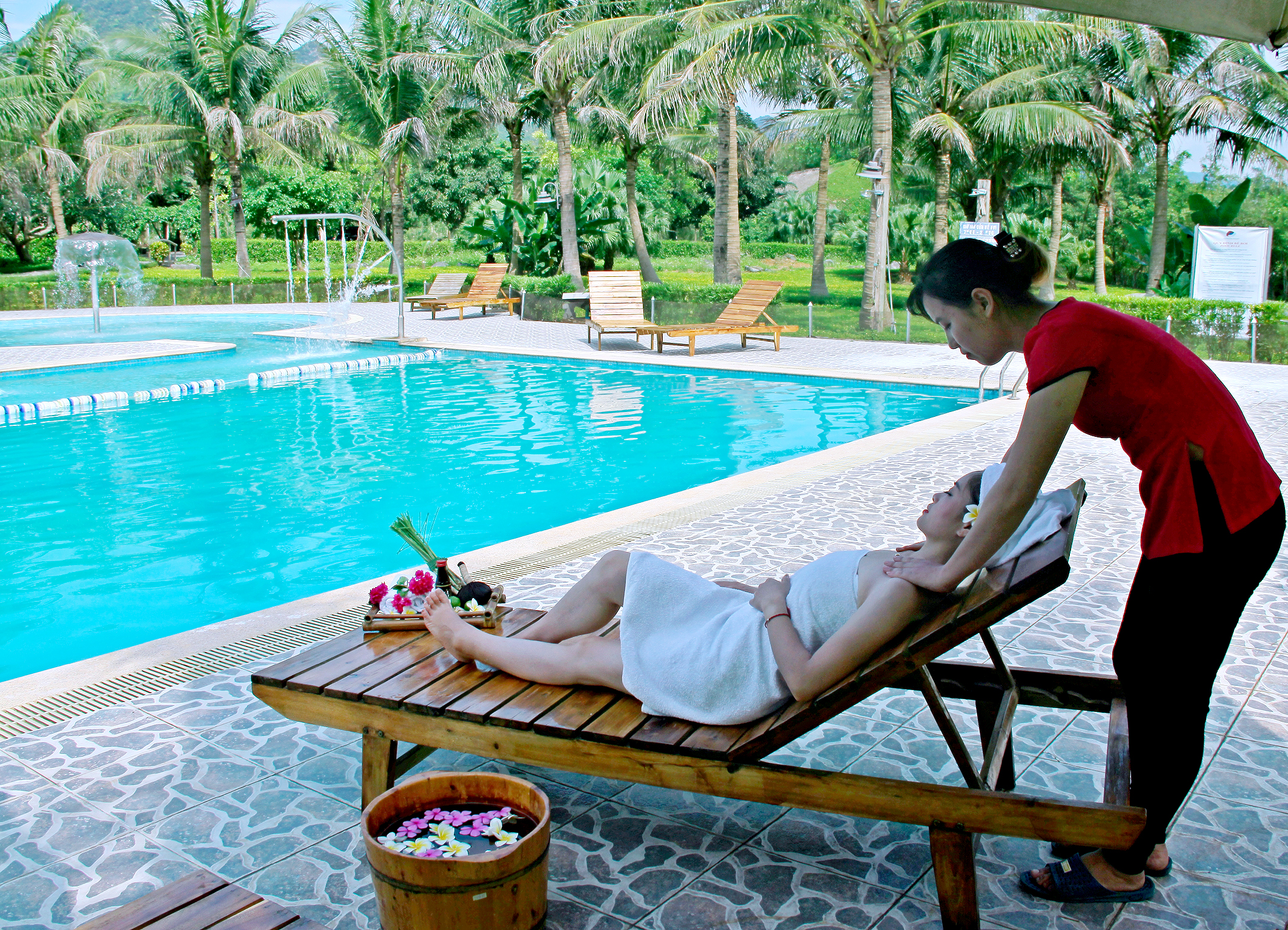 – Tắm khoáng nóng thiên nhiên được lấy lên từ độ sâu 100m dưới lòng đất.