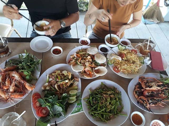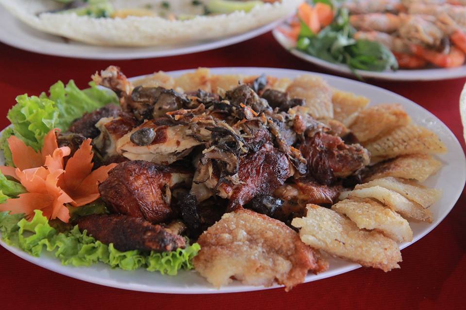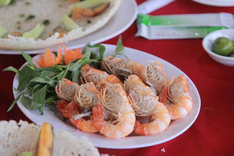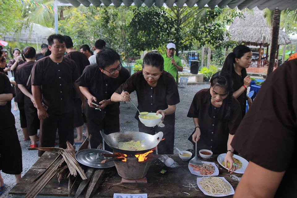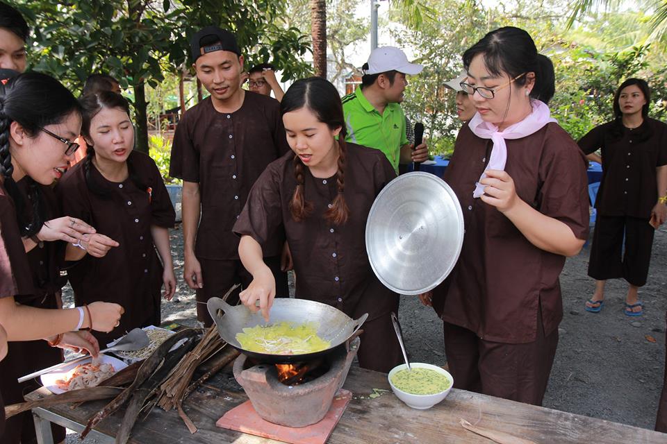 - Tự chiên bánh xèo, nấu tôm, cá bắt được.