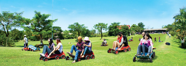 Trượt cỏ, Cưỡi Đà điểu, cưỡi Voi Tây Nguyên, Câu Cá sấu, Chèo thuyền thúng, Kayak, Bắn Súng sơn, xe điện đụng, tàu lượn siêu tốc …Du khách có thể tự mình đi xe đạp, đi xe điện dạo quanh Hồ Hương Giang, Hồ Mẫu Tử, Hồ Hoài Nam.