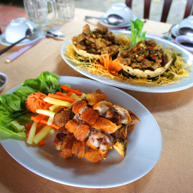Tại nhà hàng tại khu du lịch, món ăn tùy chọn hoặc theo set menu cho bàn 10 người.