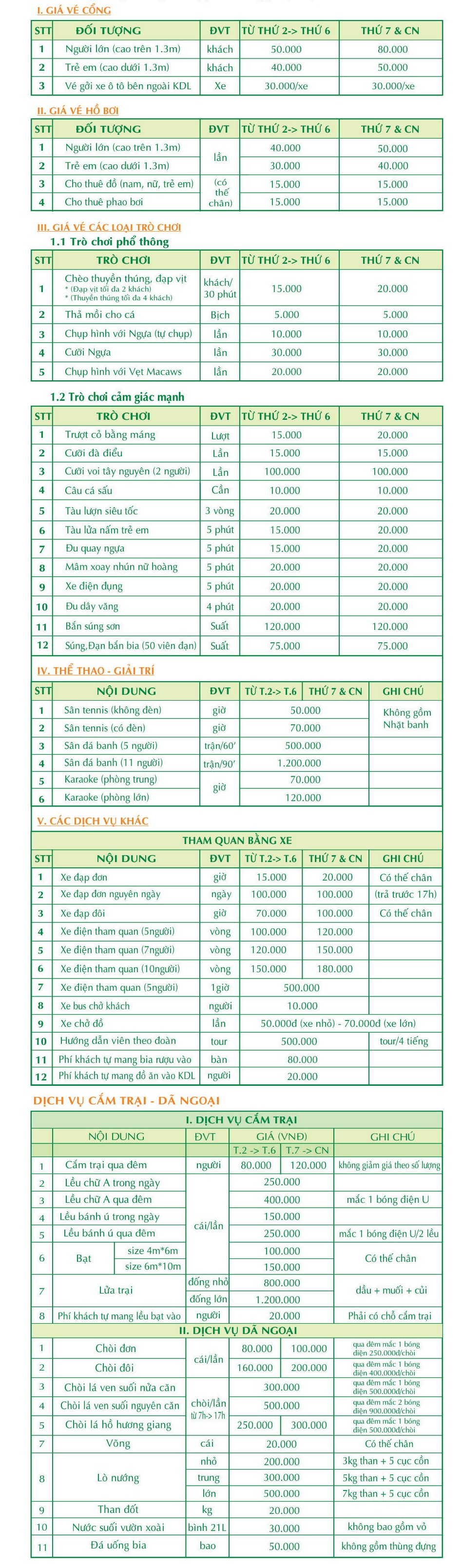 • Khách lẻ: từ 40.000 VND/ khách