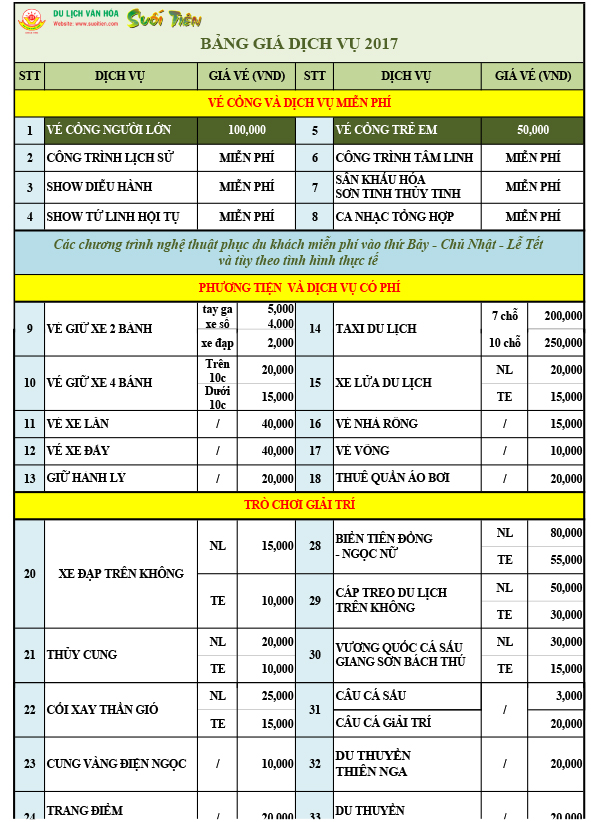- Tham gia những lễ hội tổ chức ở Suối Tiên.