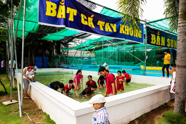 Súng sơn, thử tài thiện xạ, bắn cung, bắn đạn chì, bắn trái cây, chèo thuyền Kayak, lướt ván và lướt phao, du ngoạn trên sông bằng cano, mô tô nước, bắt cá tay không”, Thiên nga đụng, Bóng lăn trên nước …