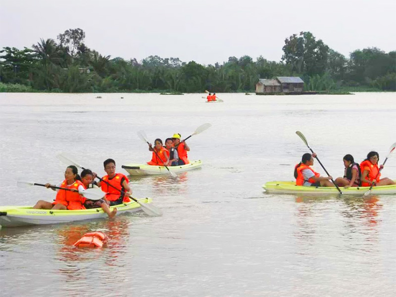 Lưu ý: trẻ em trên 5 tuổi mới được tham gia và cần ít nhất 1 người giám hộ chơi cùng khi chèo thuyền Kayak.