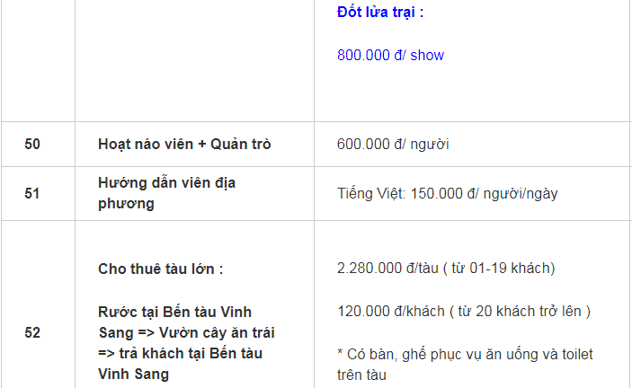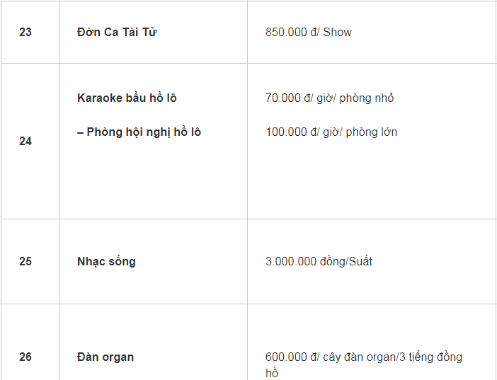 Bảng giá dịch vụ: