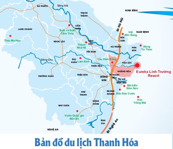 Từ Hà nội đi theo Quốc lộ 1A, qua Phủ Lý, Ninh Bình, tới địa phận huyện Hoằng Hóa rẽ vào đường tránh thành phố khoảng 3km, gặp ngã tư đèn xanh, đền đỏ sẽ thấy biển chỉ dẫn vào biển Hải Tiến, khu nghỉ dưỡng Eureka Linh Trường. Rẽ trái theo đường đi Thị trấn Bút Sơn, sau đó chạy dọc theo đường huyện lộ khoảng 12 km là tới KND. Tổng thời gian đi xe: khoảng 3 tiếng.