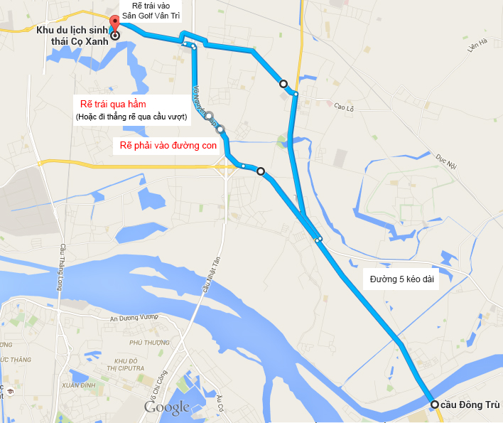 - Hướng đi từ Cầu Đông Trù, Quốc lộ 5