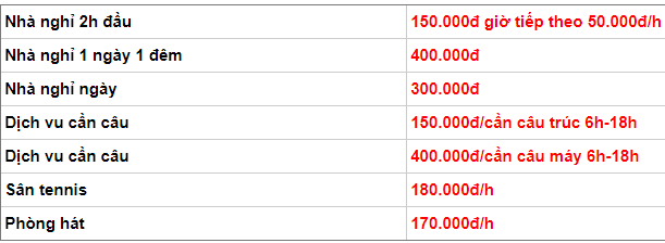 Khu nhà nghỉ dưỡng : 26 phòng nghỉ được trang thiết bị đầy đủ tiện nghi.