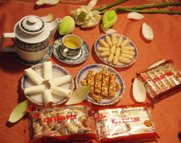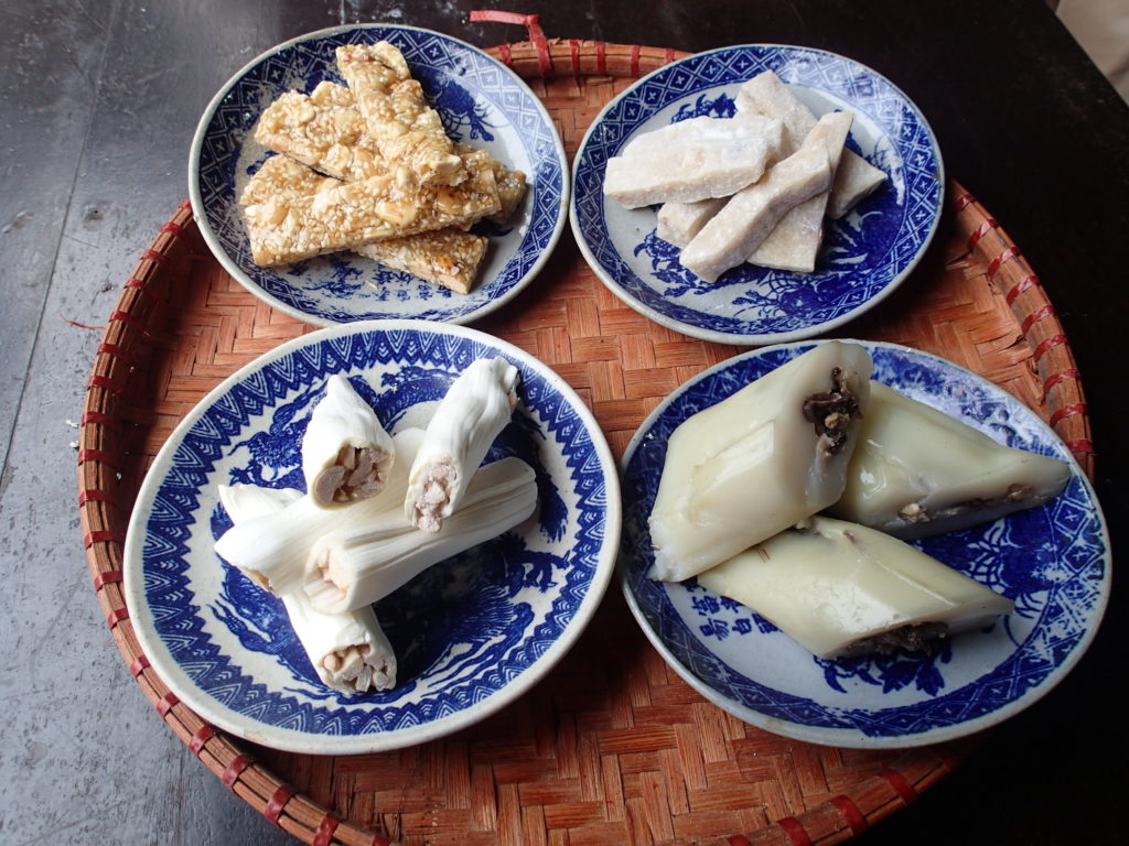 Nhà ăn tại khu Làng cổ với các món đặc sản Gà mía, tương chấm, chè lam hay kẹo dồi…