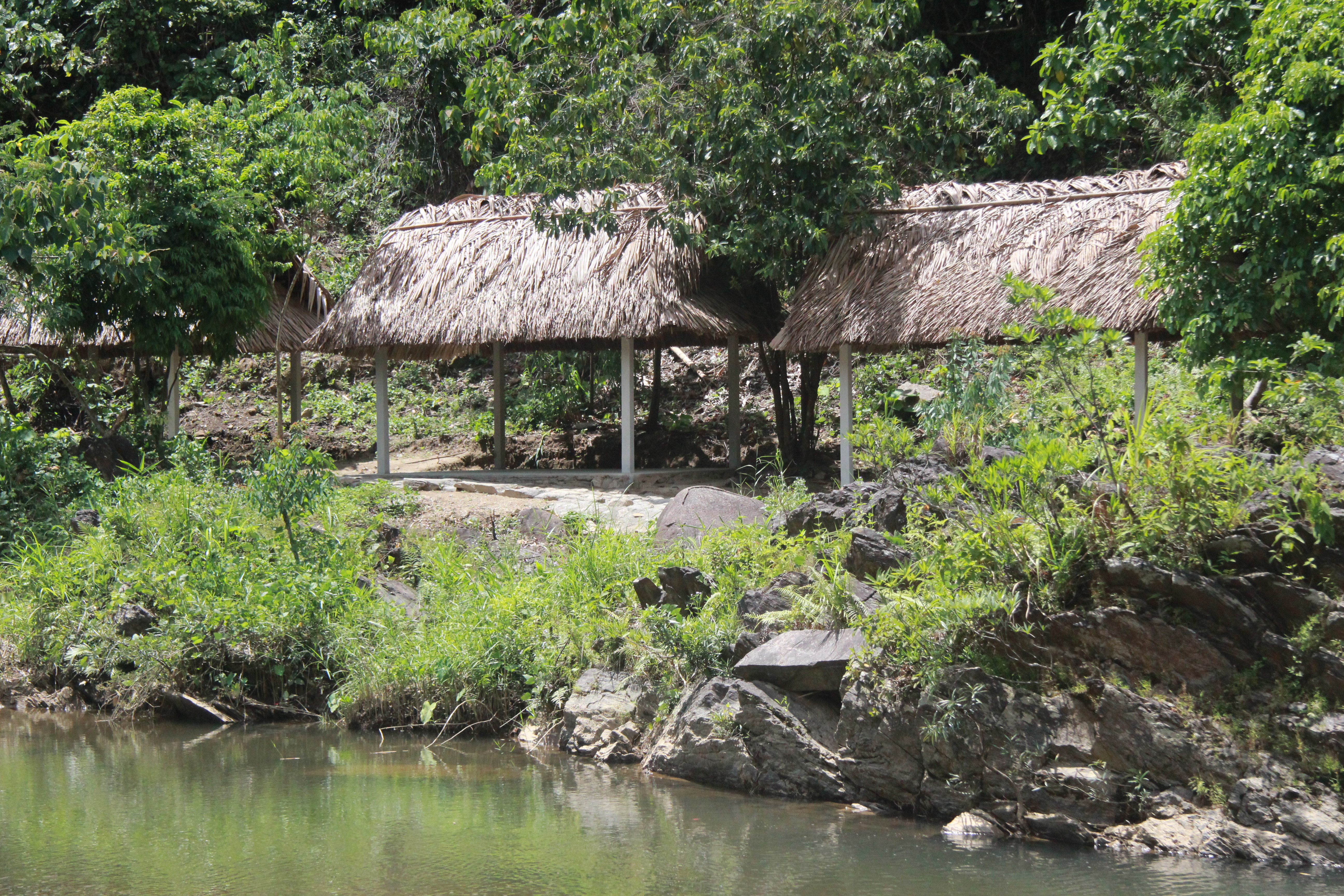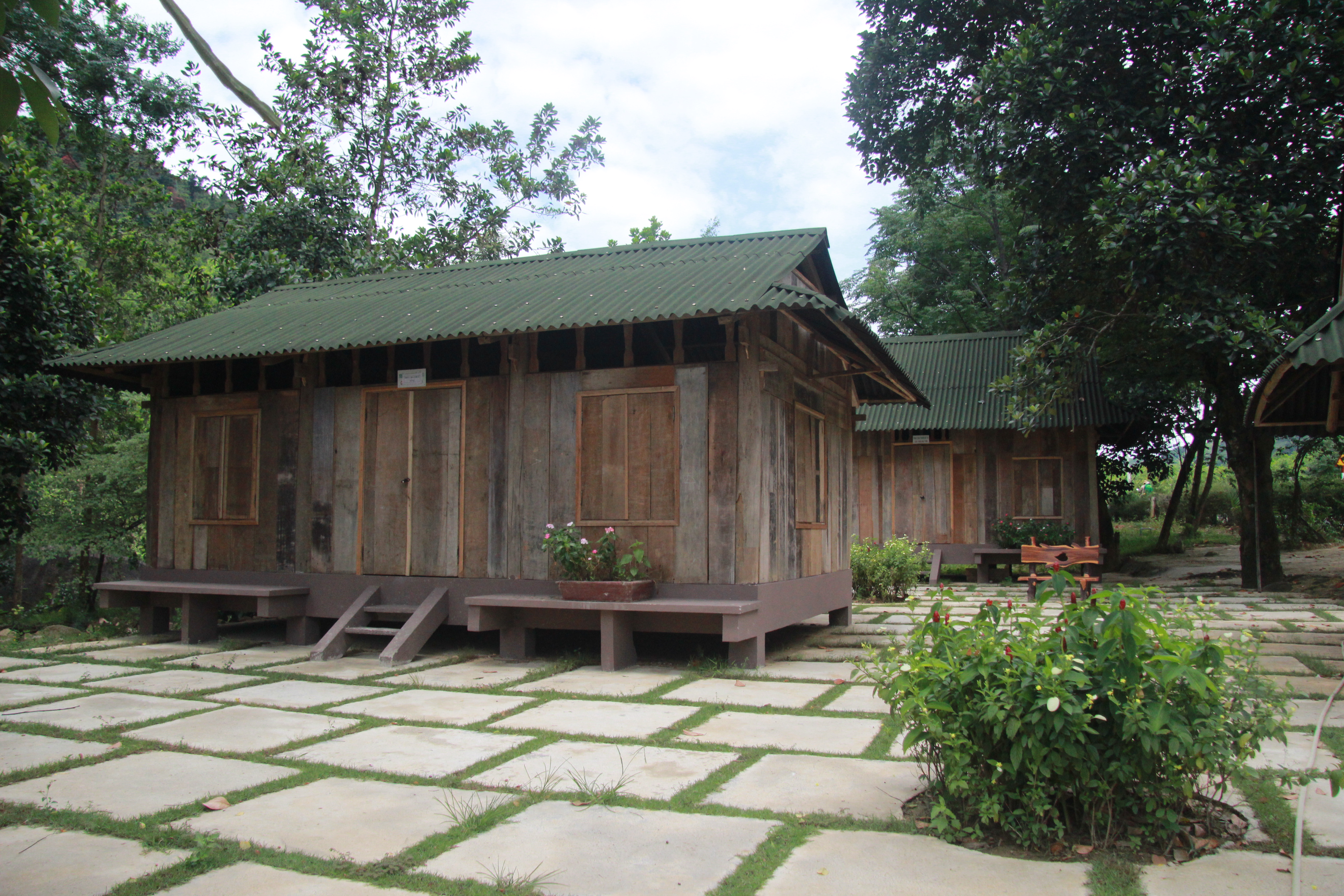 - 5 gian nhà sàn chính, mỗi gian nhà chưa được 10 người, và 8 căn chòi nhỏ nằm bên bờ suối.