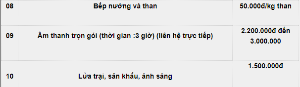 Bảng giá dịch vụ: