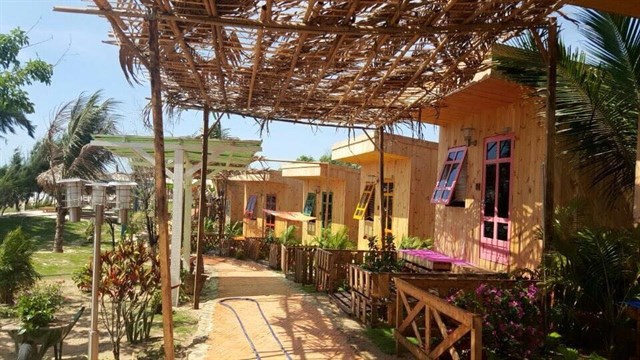 • Dãy phòng gỗ xinh xắn được thiết kế giống các bãi biển ở nước ngoài