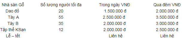 - Tiệc nướng bể bơi: 1.800.000 đ / bàn ăn (bàn tiêu chuẩn 6 người)