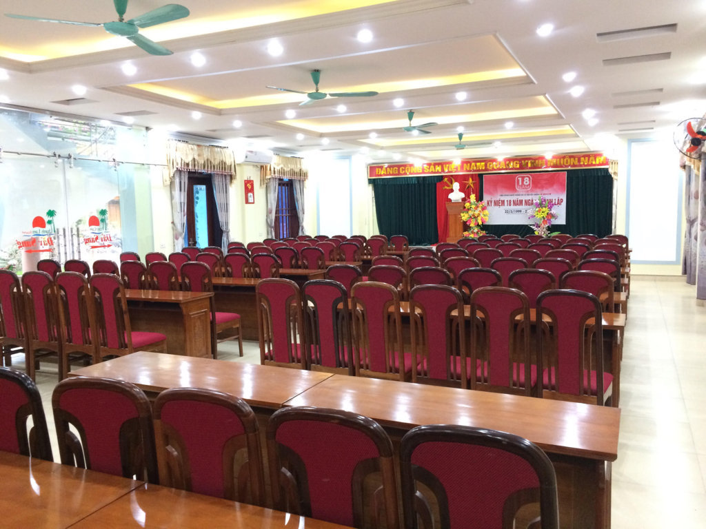 – Phòng tập thể khách sạn : Diện tích 80 m2, điều hòa, quạt trần, tivi, tủ quần áo, bàn ghế uống trà, ban công tầm nhìn xa ra khu vực đồi núi thung lũng phía dưới.