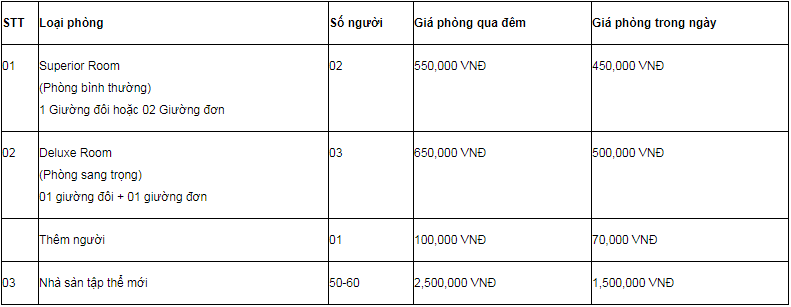 – Dưới 40 khách: 2,000,000 VNĐ/buổi