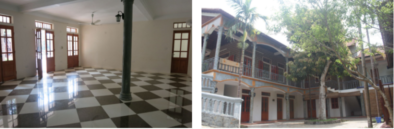 – Sân vườn nghỉ ngơi ngoài trời: khi không mưa sẽ phục vụ thêm chiếu, võng dây, gối cho đoàn nghỉ trưa (và quạt điện phục vụ vào mùa hè).