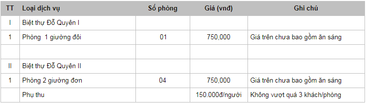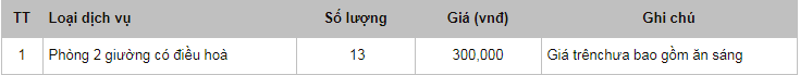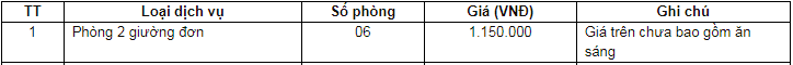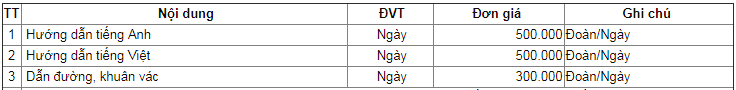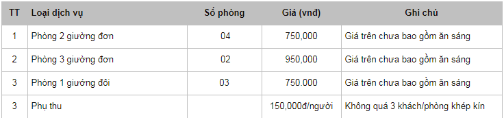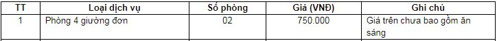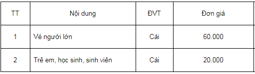 Bảng giá dịch vụ: